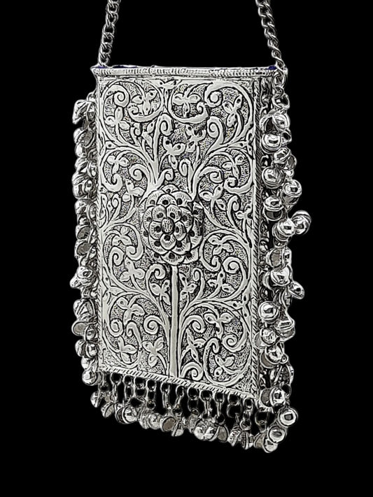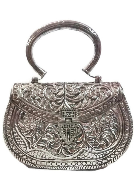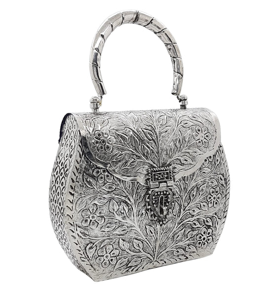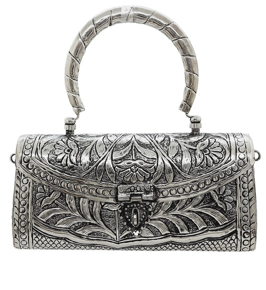 Trend Overseas Oxidized Silver Clutch Bag with Handle – German Brass Bridal Purse for Weddings & Parties