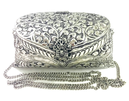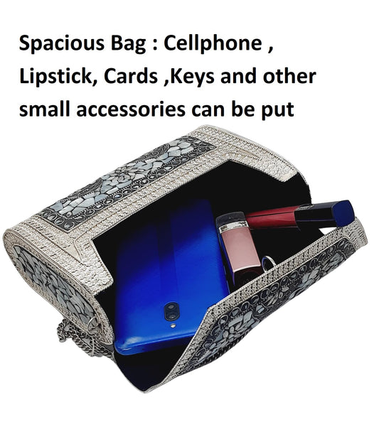 Trend Overseas Women Silver bridal bag Brass Metal Clutch Sling Bag Ethnic Antique clutch