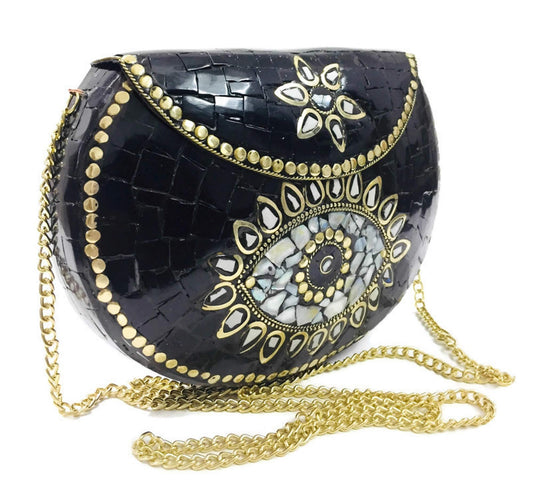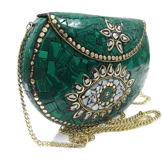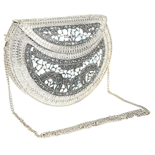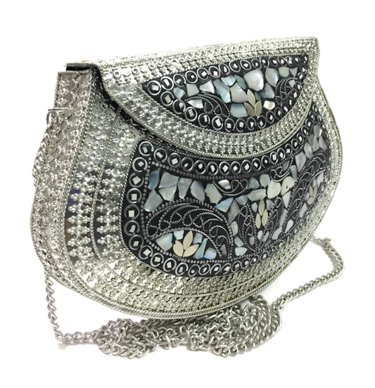 Trend Overseas Antique Indian art Handmade Stone mosaic metal bag Women/Girls Bridal metal clutch party sling bag