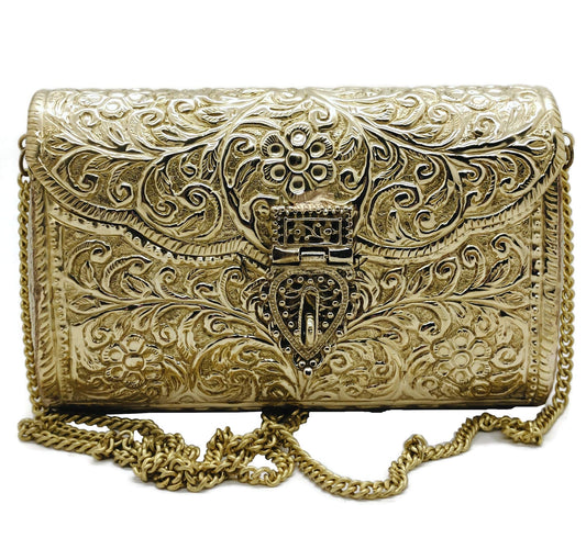 Trend Overseas Women's Vintage Handmade Brass Metal Hand Carving Clutches Handbag For Party