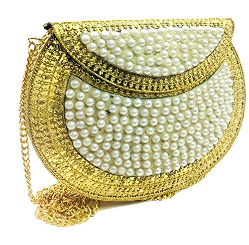 Trend Overseas Golden pearl beaded bag ethnic clutch indian antique purse mosaic bag metal bag clutch party clutch