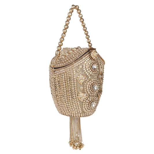 Trend Overseas Golden Sling Bag,Women Gift,Diwali Decor,Christmas Gift, Metal Handbag,Crystal Purse, Rhinestones Bag,Women party clutch, bridal bag