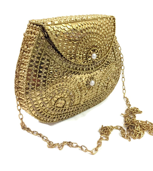 Trend Overseas Golden side bag Indian Vintage Brass Purse antique Ethnic clutch Handmade Women metal clutch Bag Party bag
