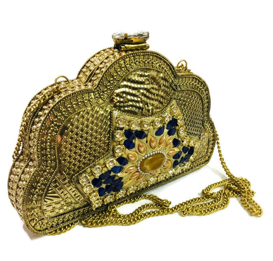 Trend Overseas Golden Handle clutches Handmade Brass Handbag for women party Bride marriage clutch