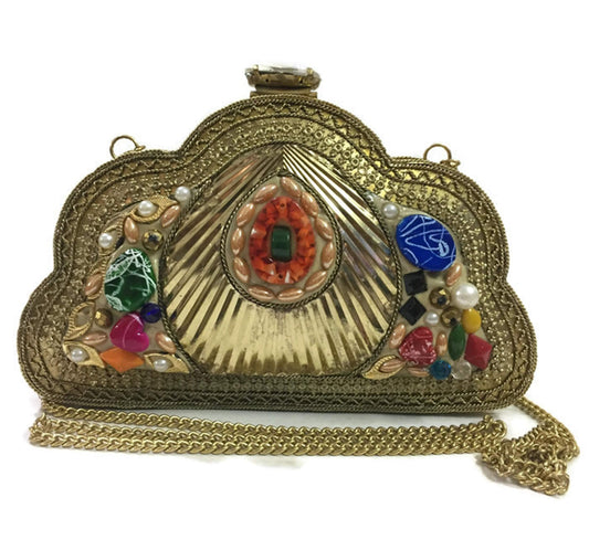 Trend Overseas Golden Metal Clutch shell nacre stone bag ethnic clutch antique purse girls gift