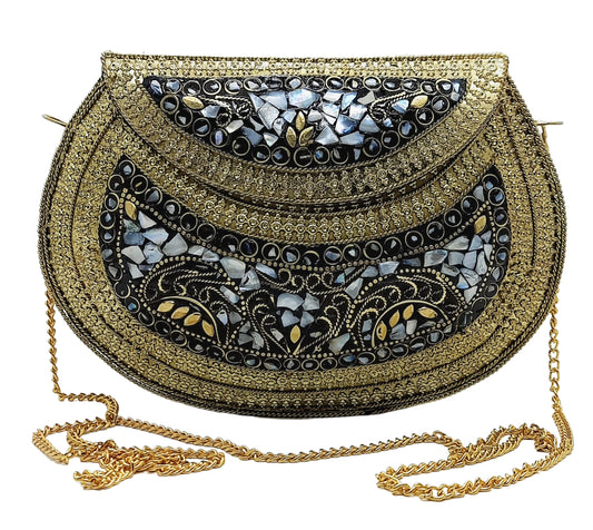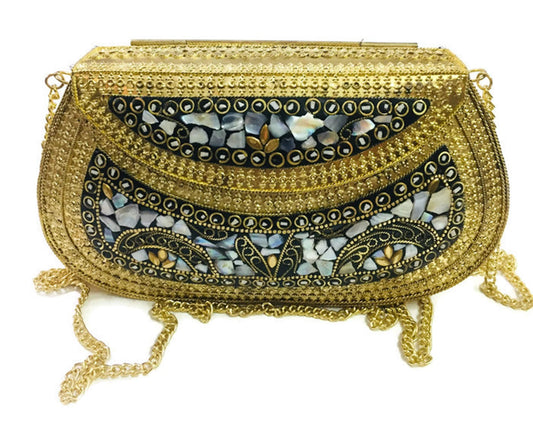 Trend Overseas Golden shell nacre stone bag ethnic clutch indian antique purse mosaic bag metal bag