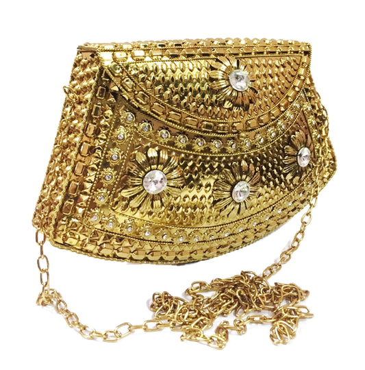 Trend Overseas Golden Handle clutches Handmade Brass women party Bride marriage clutch