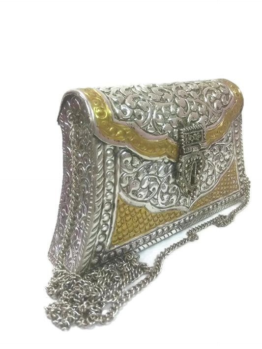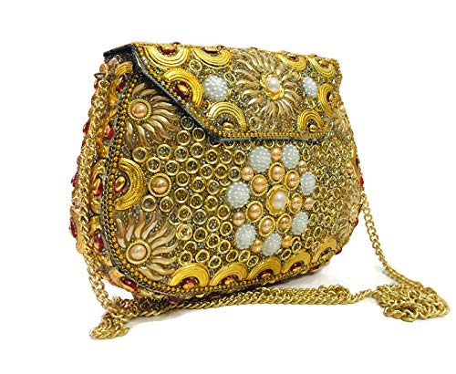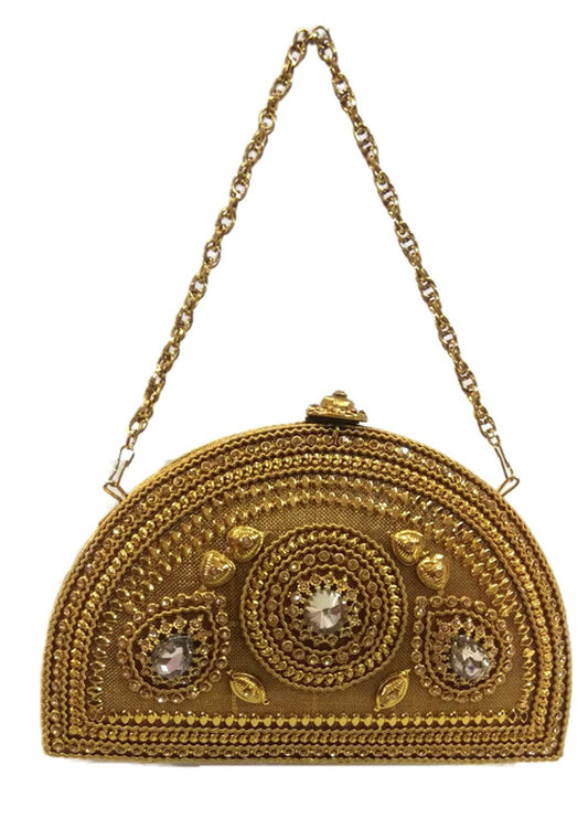 Trend Overseas Golden women wedding clutch golden chain clutch metal bag ethnic purse indian vintage wallet bridal bag party clutch