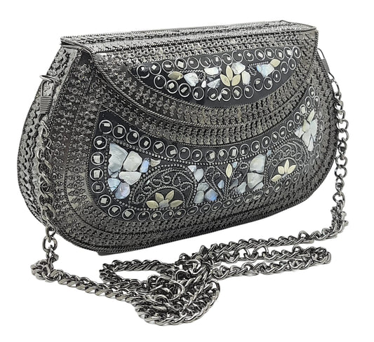 Trend Overseas Handmade Antique Stone Bag Ethnic Clutch - Metal Bag Perfect for Parties, Fits All Cellphone Models