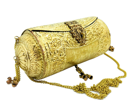 Trend Overseas Handmade Ethnic gift Brass Metal bag antique bridal clutch round long