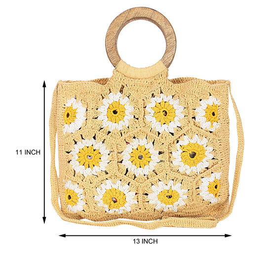 Trend Overseas Handmade Crochet Multicolour Flower Straw Bag Travel Beach Fishing Net Handbag Shopping Woven Shoulder Bag for Women