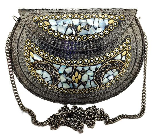 Trend Overseas Handmade mosaic metal bag Stone Ethnic Indian Women/Girls Bridal metal clutch party sling bag