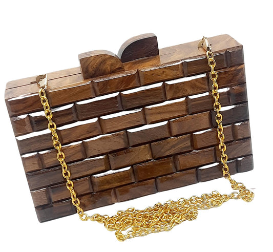 Trend Overseas Handmade Wooden Printed Clutch Crossbody Bag | Detachable Chain | Light Weight | Ethnic Look | Party Bridal Bag