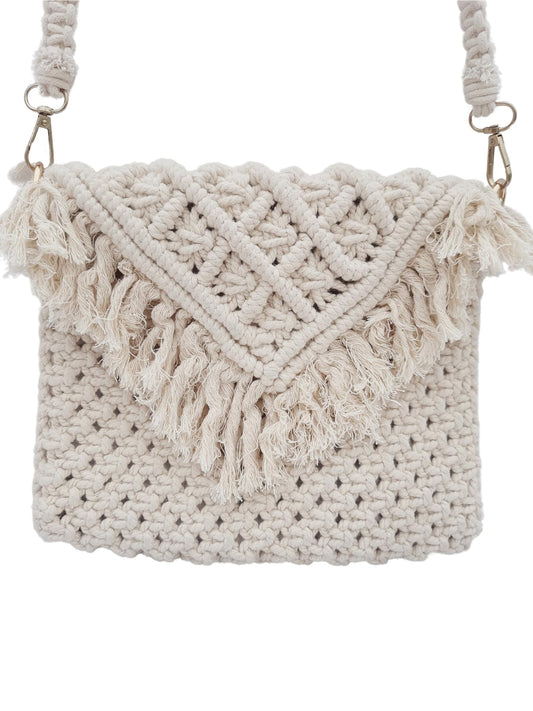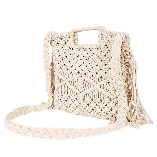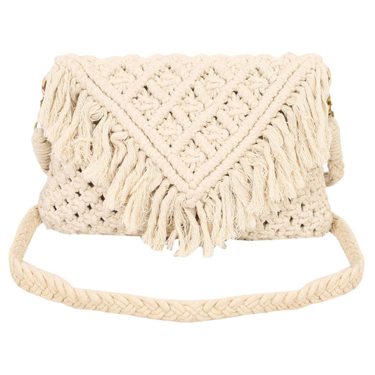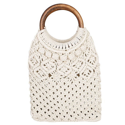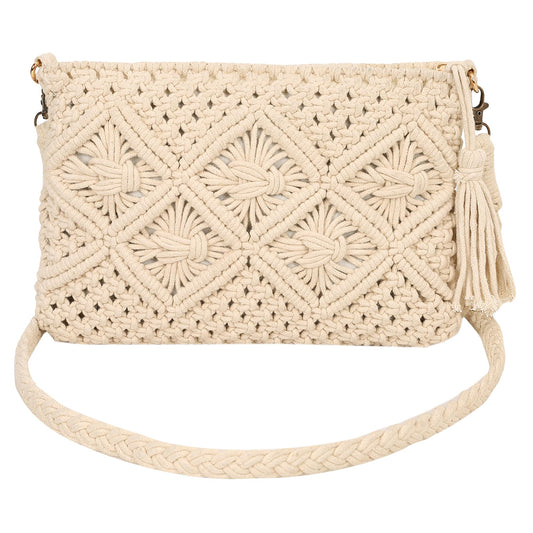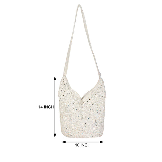 Trend Overseas Handwoven Shoulder Bag Crochet Craft Women/Girl Ivory (Off-White) Macrame Bag