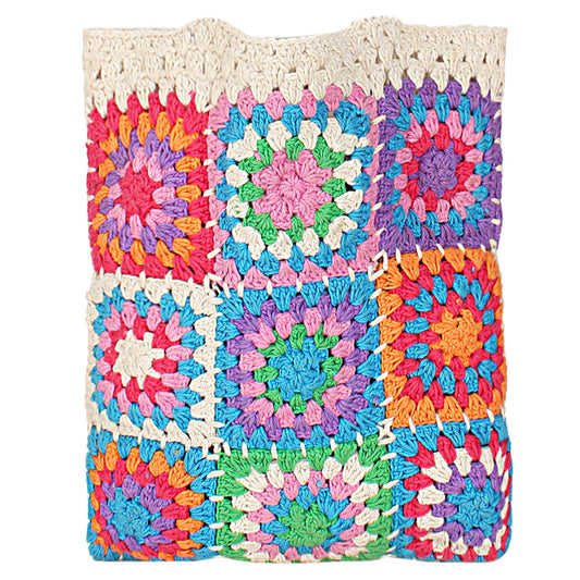 Trend Overseas Handwoven Crochet Multicolour Flower Fishing Net Handbag Shopping Woven Shoulder Bag for Women