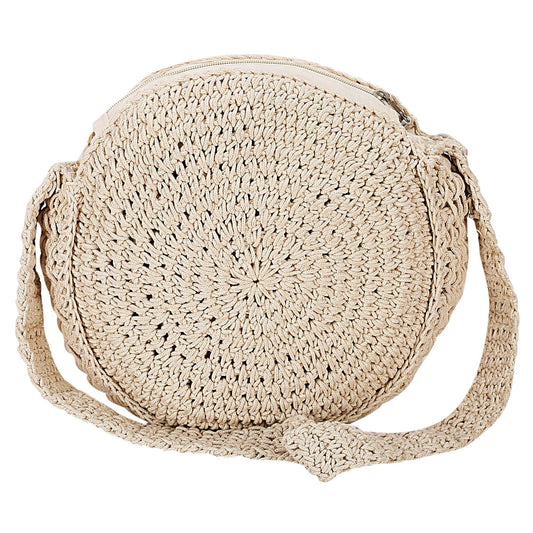 Trend Overseas Handwoven Crochet Craft Women/Girl Ivory (Off-White) Round Macrame Straw Bag Summer Beach Tote Handbags Handle Shoulder Bag