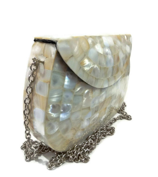 Trend Overseas Women's Antique Black Color shell nacre stone bag ethnic clutch metal bag party clutch