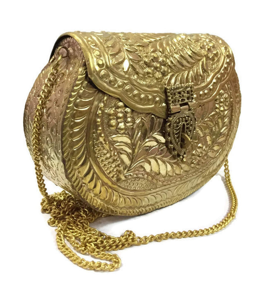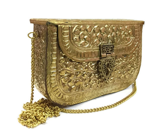 Trend Overseas Women's Brass Metal Vintage Ethnic Clutch (Gold)