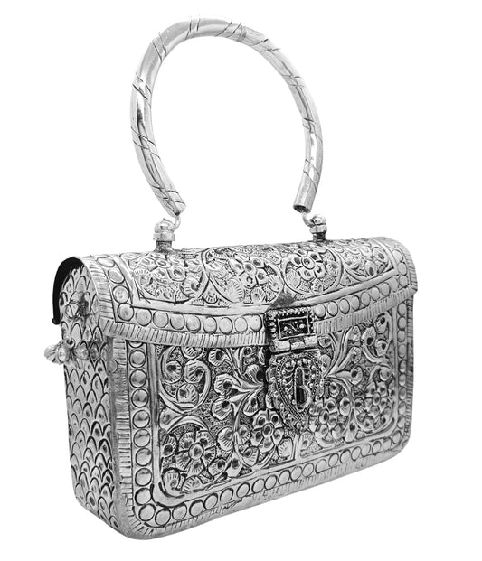 Trend Overseas Women's Antique Ethnic Handmade Silver Oxidized Handle Brass metal Clutch