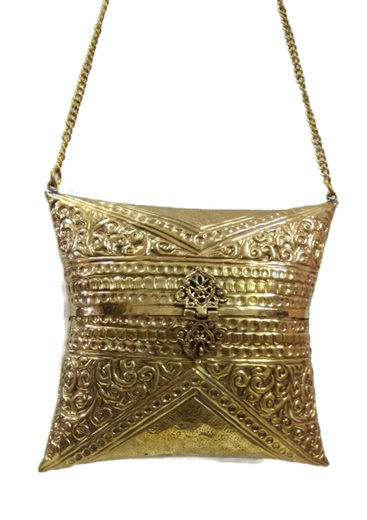 Trend Overseas Women's Brass Metal Sling Bag (Golden)