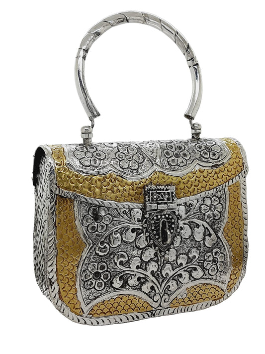 Trend Overseas Women's Antique Ethnic Handmade Silver Golden Handle metal Clutch
