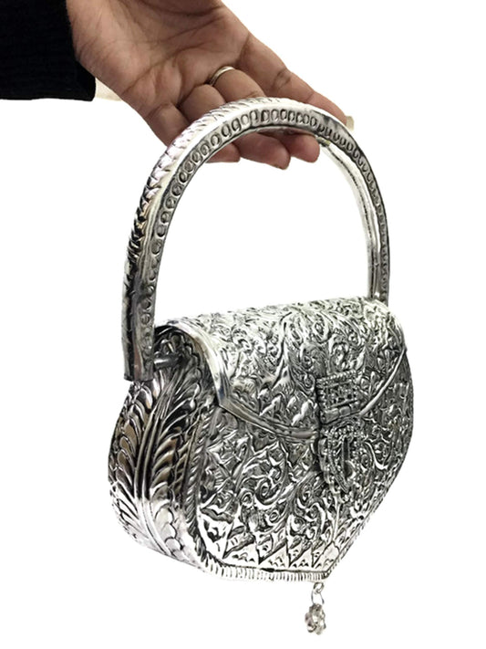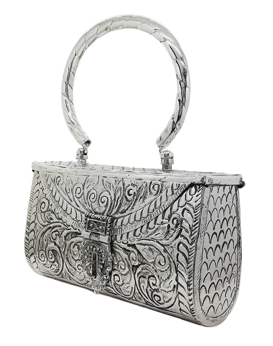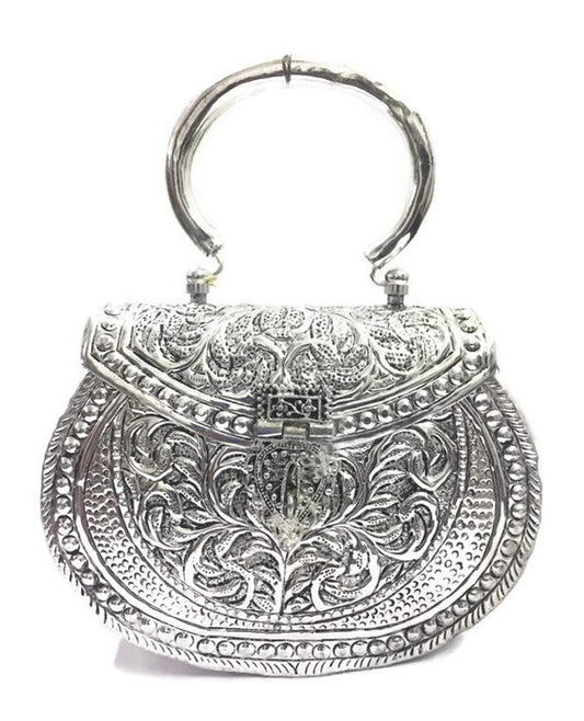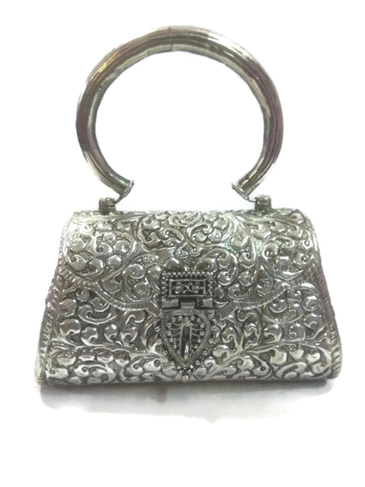 Trend Overseas Women's Antique Handmade Silver Handle metal Clutch