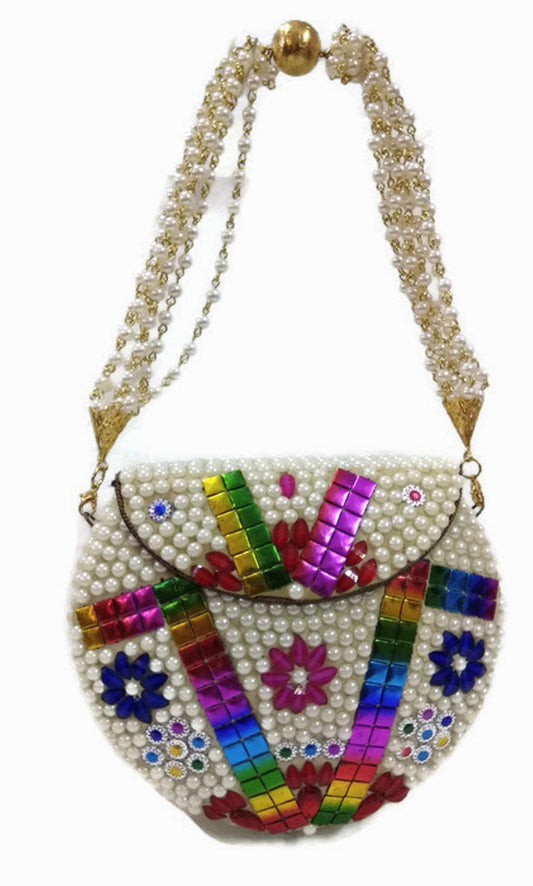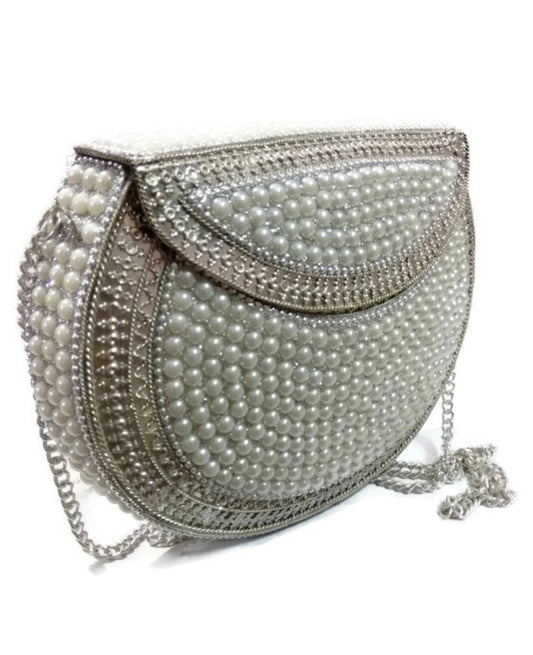 Pearl Beaded metal bag ethnic clutch tribal Wallet vintage purse women party bag