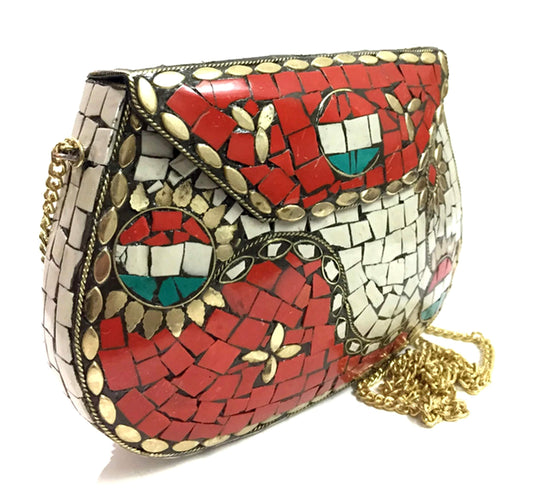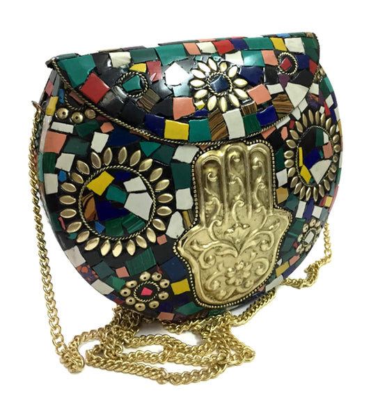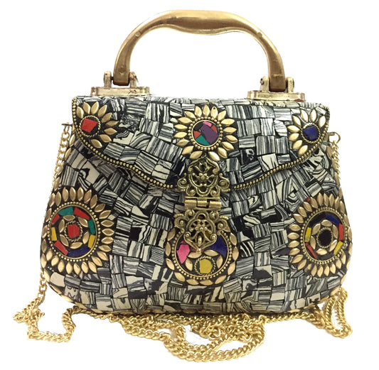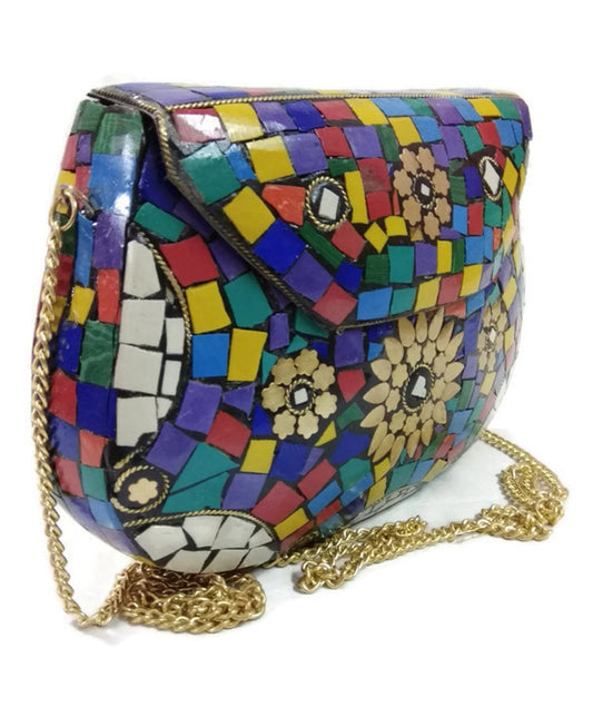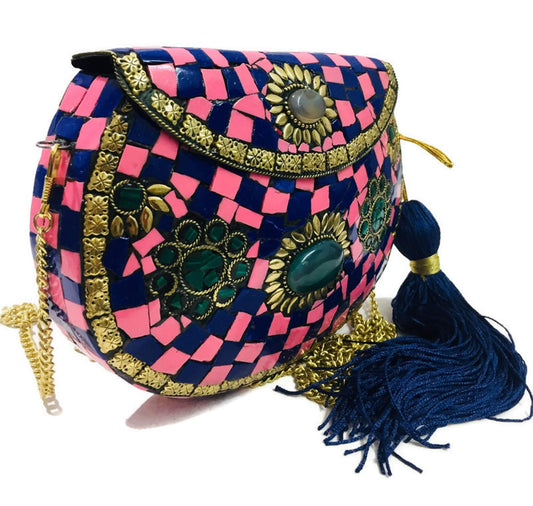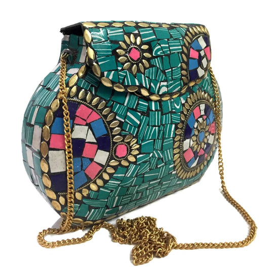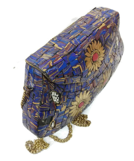 party clutches Handmade art Sling Clutch, mosaic bag, stone Clutch, Ethnic Metal box,bridal wallet, Indian vintage bag