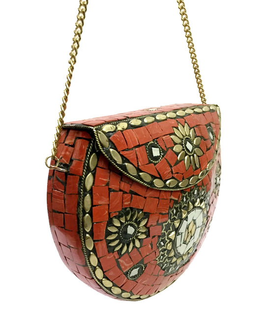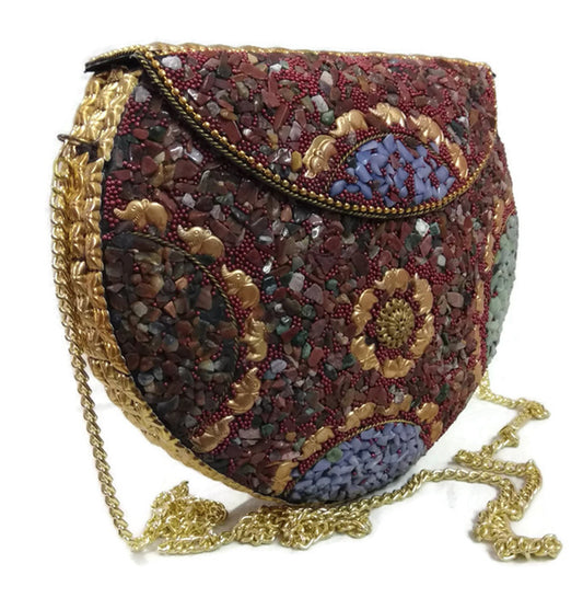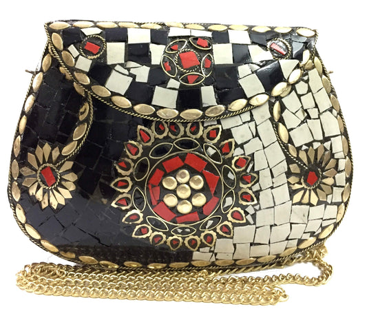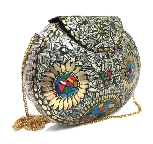 Party Sling Clutch mosaic bag stone Clutch Ethnic Metal bag bridal wallet Indian vintage bag Antique Bag