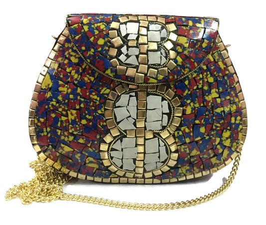 mosaic clutch Ethnic Clutch metal bag metal clutch mosaic purse Vintage clutch Long chain bag Handle clutches Handmade Bag Brass metal purse