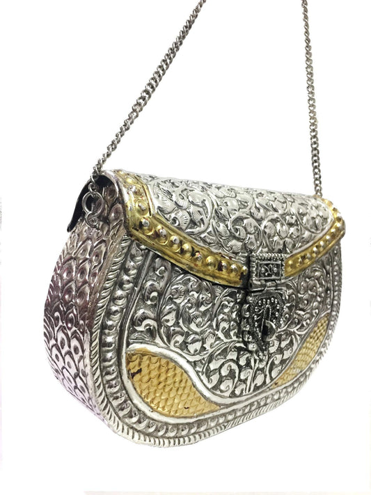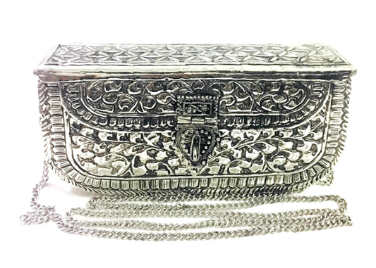 Indian Ethnic Sling bag for women party clutch White Metal clutches Vintage Handmade Brass metal purse Antique Hand clutch