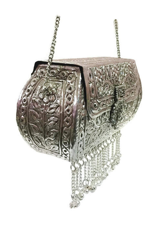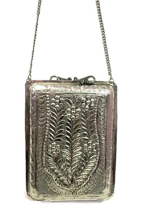 White silver brass Metal clutch Vintage clutch Handmade bag metal purse ethnic wallet