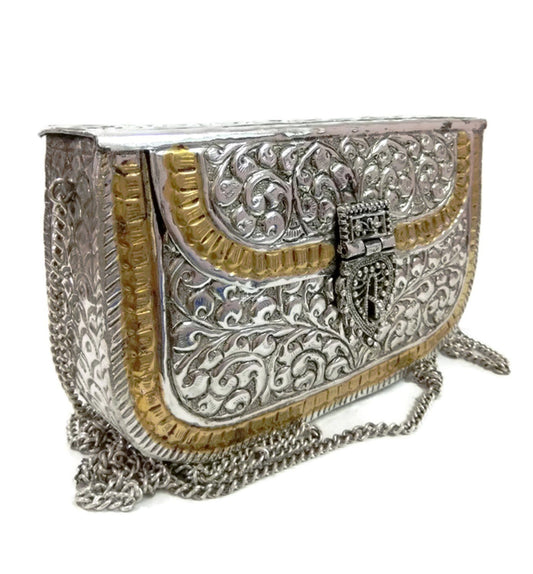 White brass Metal clutch Vintage 2 tone Handmade bag metal purse ethnic wallet