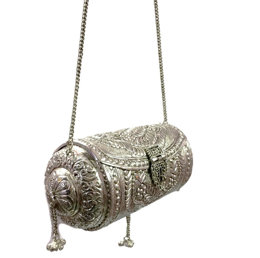 White Metal bag, brass clutch,Vintage clutch, Handmade bag, metal purse, round wallet Christmas gift,diwali decor