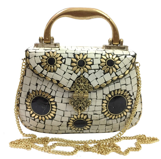 White Purse Ethnic Clutch metal bag metal clutch mosaic purse Vintage clutch Long chain bag Handle clutches Handmade Bag Brass metal purse