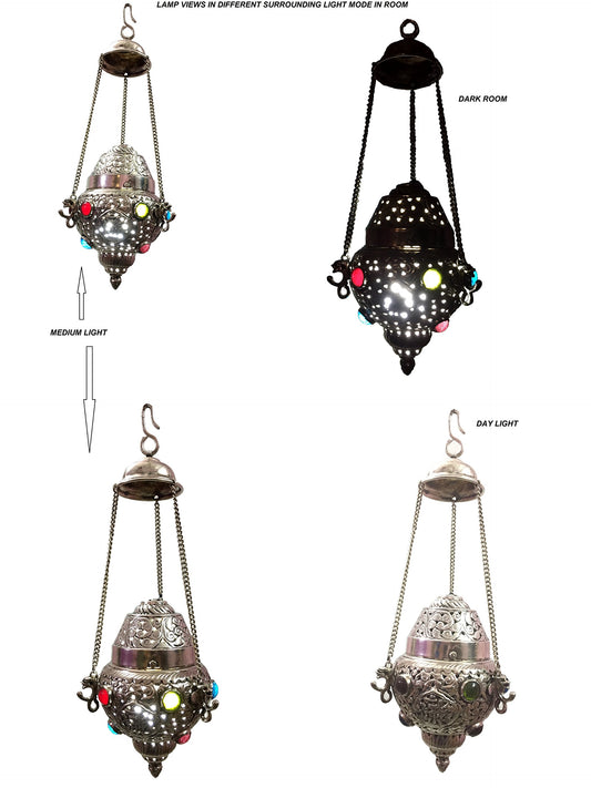 Silver Vintage Style Hanging Lamp of Brass Metal Adorned with Glass Beads and Intricate Carving Antique Golden Finish Beautiful Lantern