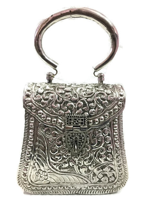 Silver Handle clutches Vintage Handmade Brass metal purse Hand clutch Handbag for women party Bride marriage clutch