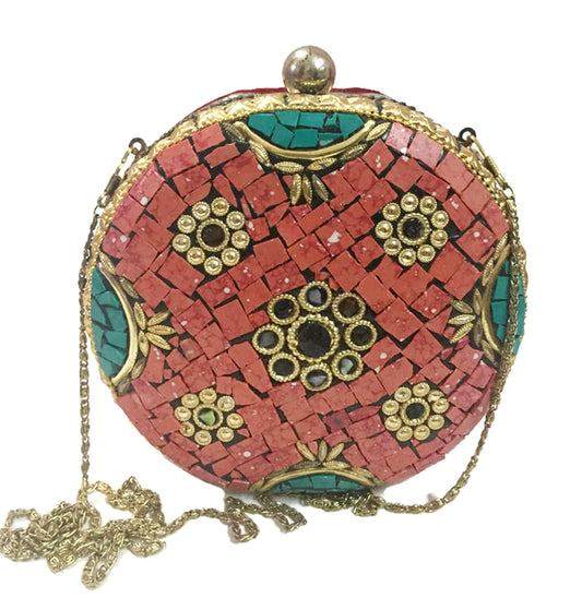 Round Mosaic Clutch,Ethnic Bag,vintage handbag, Diwali gift,Diwali collection, Diwali Decor,Bridal Bag