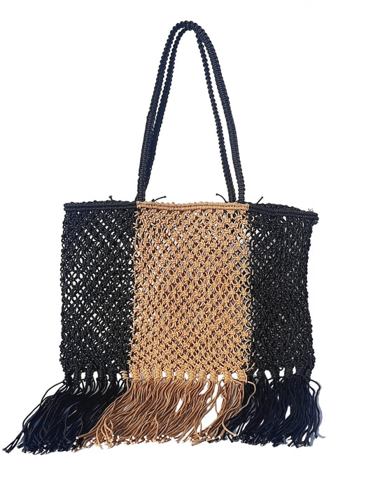 Trend Overseas Brown Black Women/Girl Women's Handwoven Crochet Macram? Bags Fringe Thread Rope Bag