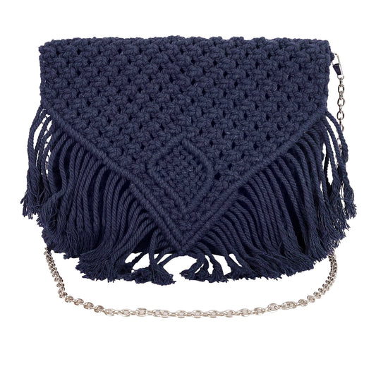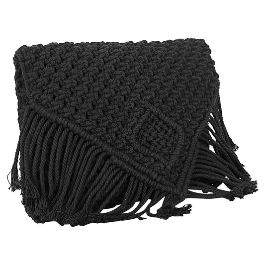 Trend Overseas Teenager Kids Women/Girl Handwoven Crochet Macrame Cotton rope Handbag Crossbody Bag cum Clutch (Black)