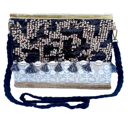 Trend Overseas Multicolor Jute Embroidery pom pom Bridal Bag cross body party sling bag