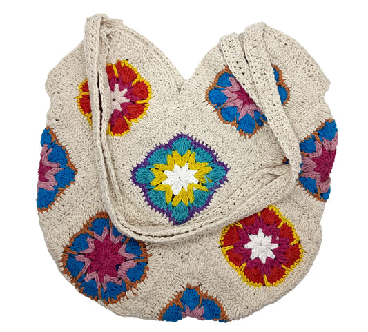 Trend Overseas Handwoven Crochet Multicolour Flower Straw Bag - Travel, Beach, Shopping Woven Shoulder Bag for Women