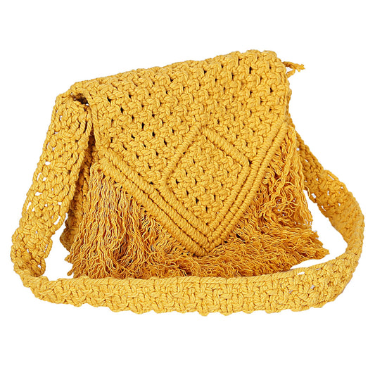 Trend Overseas Teenager Kids Women/Girl Handwoven Crochet Macrame Cotton rope Handbag Crossbody Bag cum Clutch