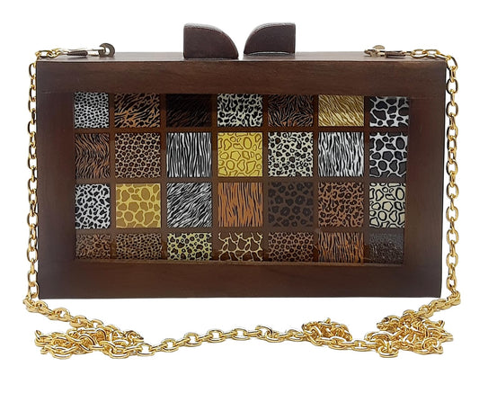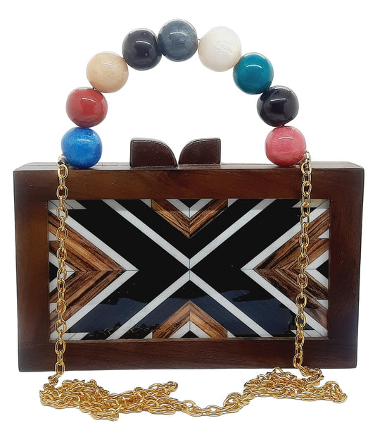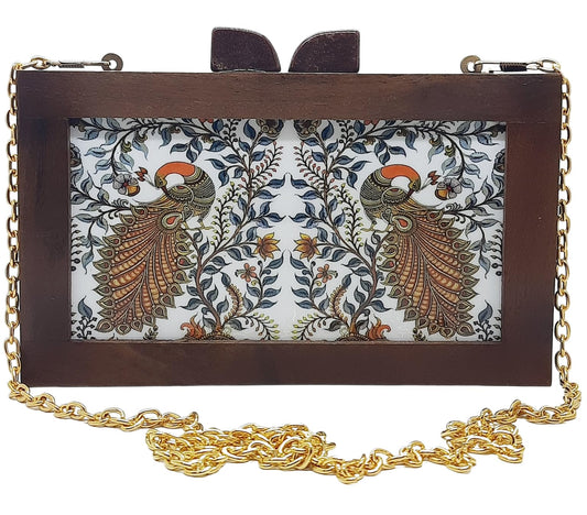 Trend Overseas Handmade Wooden Printed Clutch Crossbody Bag | Detachable Chain | Light Weight | Ethnic Look | Party Bridal Bag