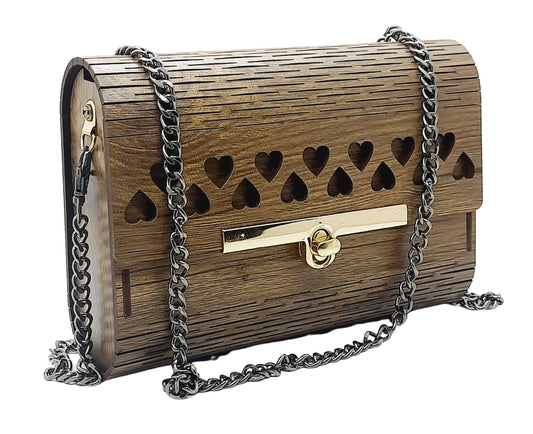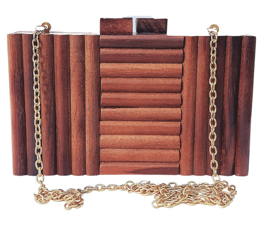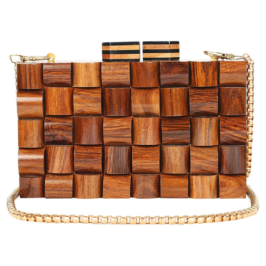 Trend Overseas Wooden Clutch Purse Bridal Clutch Handmade Brown Wooden Clutch cum Sling Bag