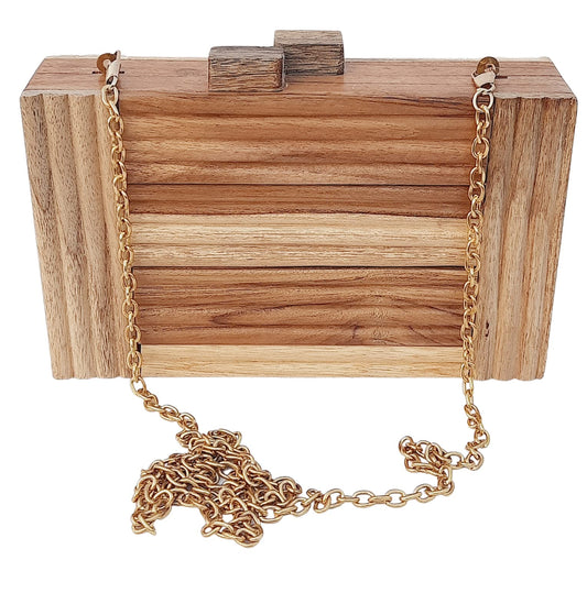 Trend Overseas Natural Wooden Clutch Purse Bridal Clutch Handmade Brown Wooden Clutch cum Sling Bag