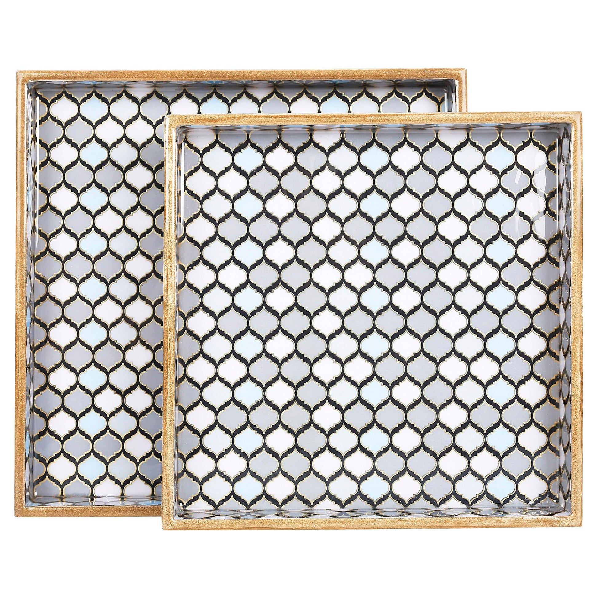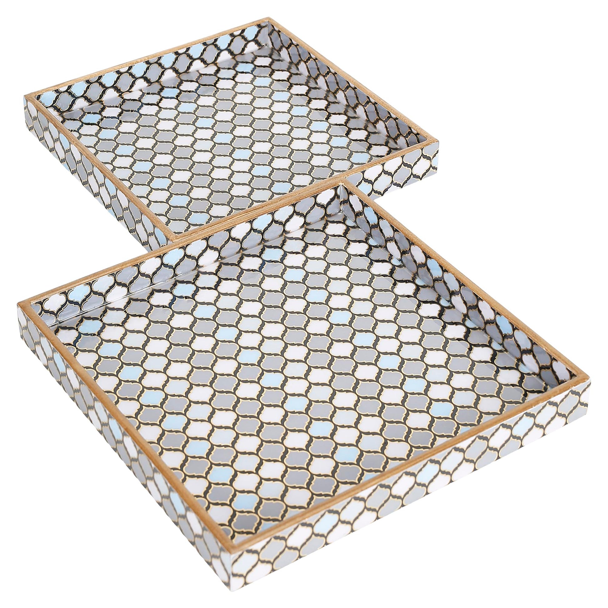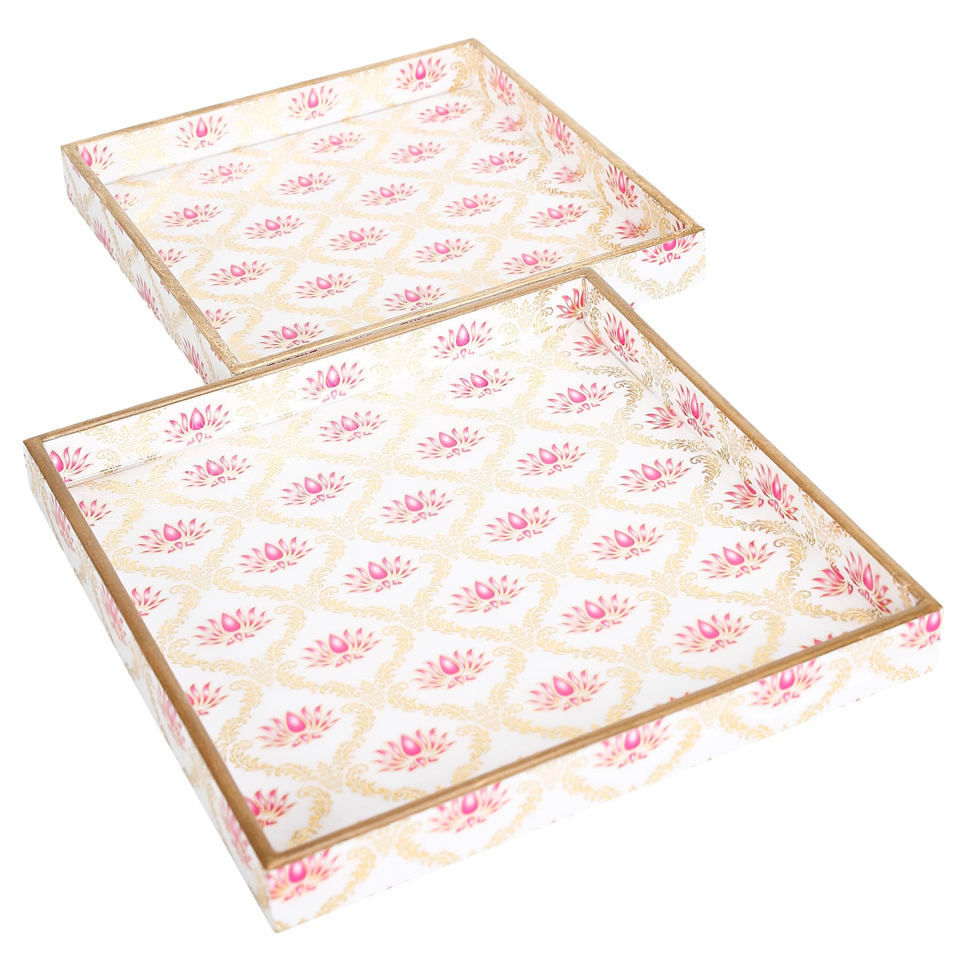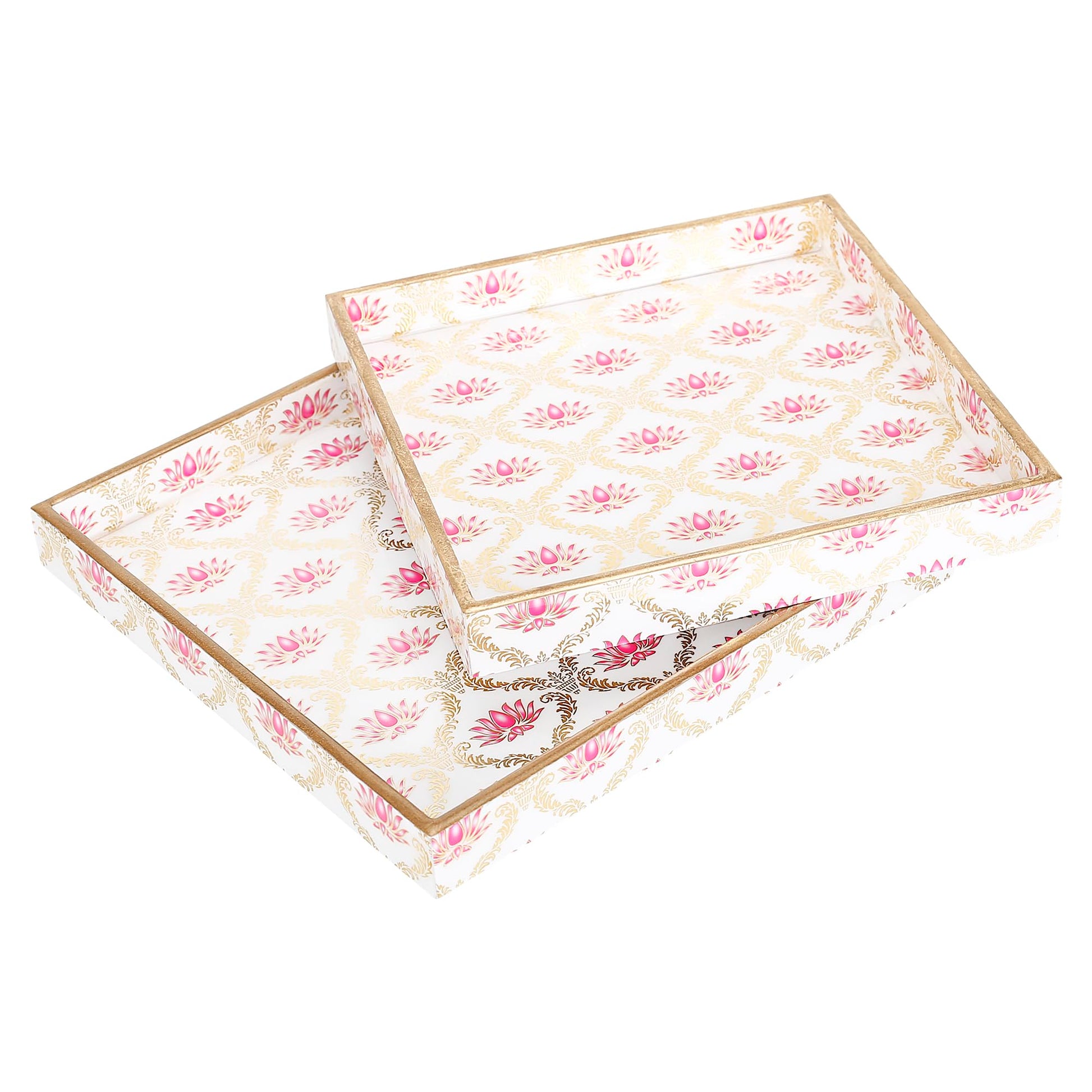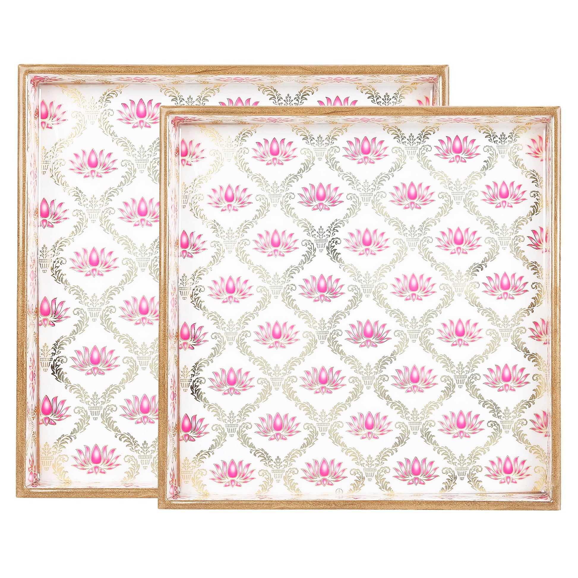 Trend Overseas Designer MDF Wooden Serving Trays Set - Special Enamel Coating, 3D Gold Foil Work, Perfect Size