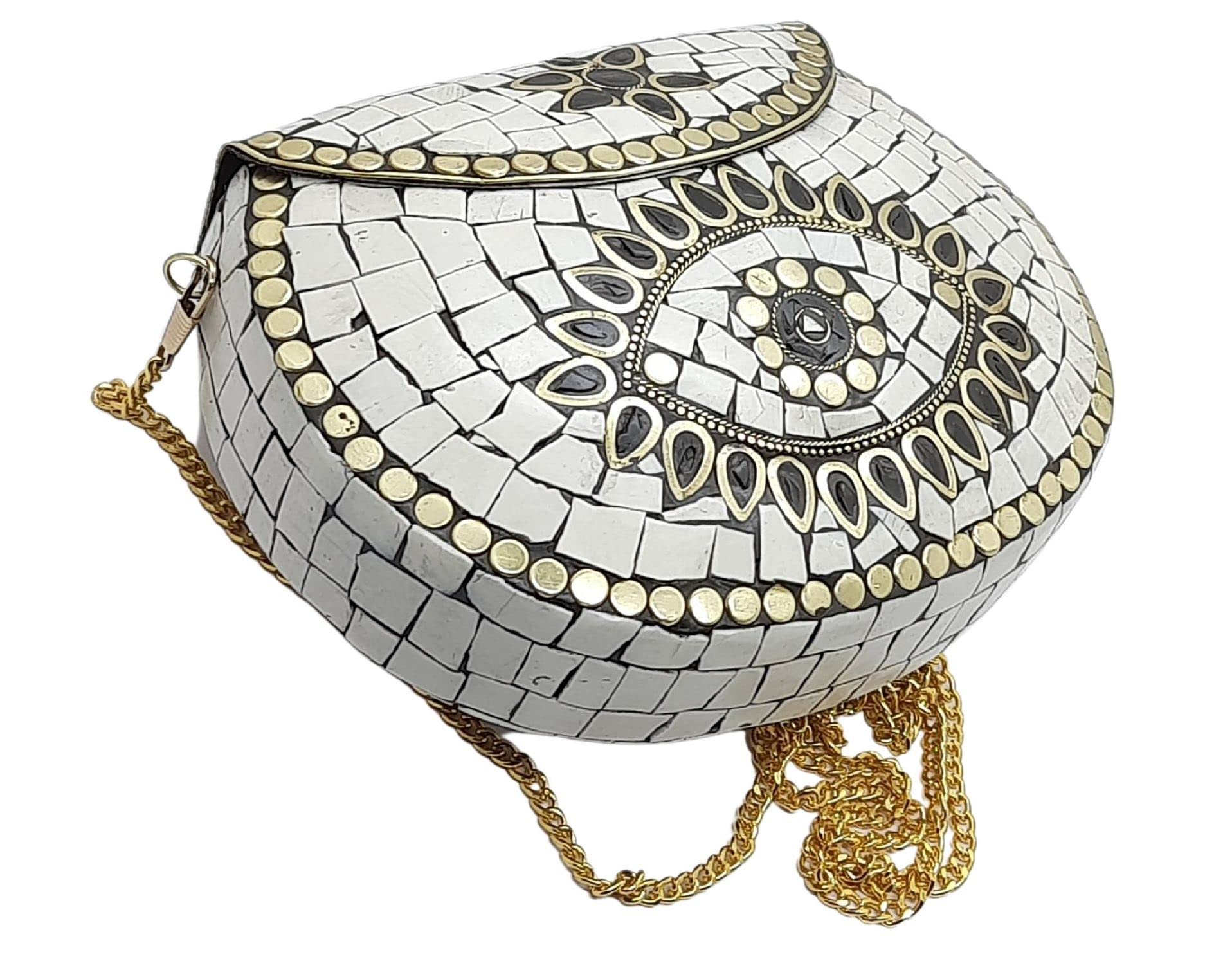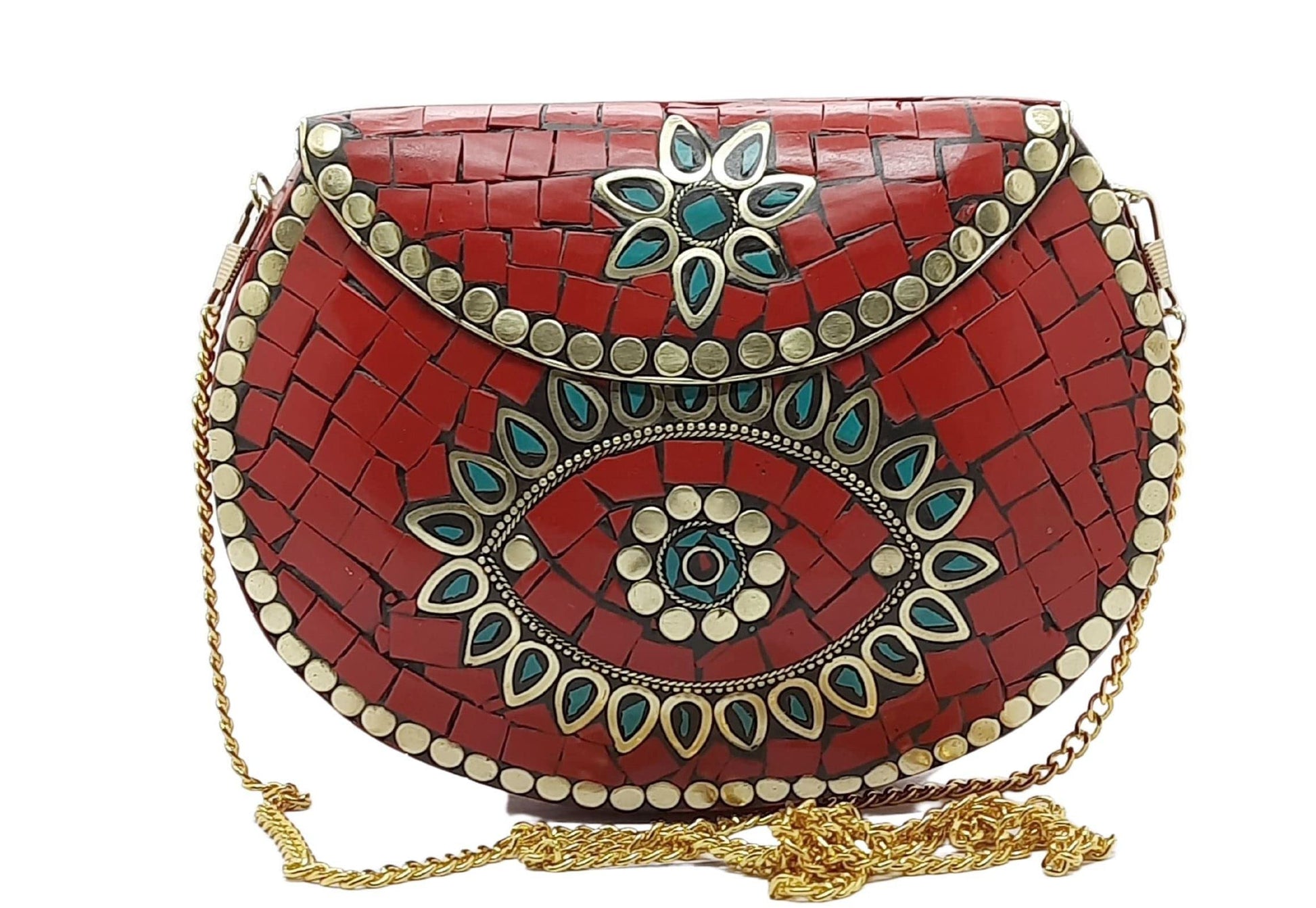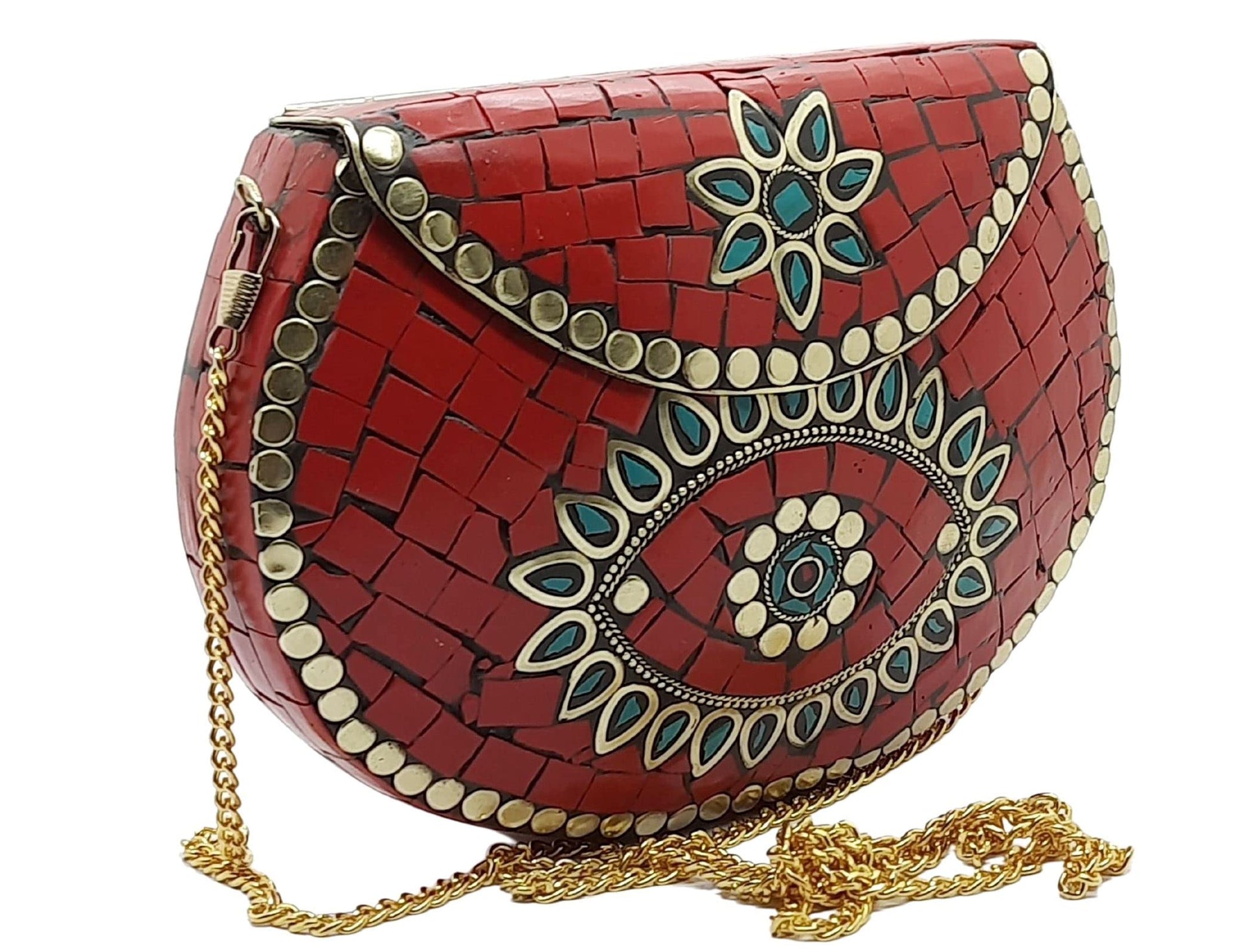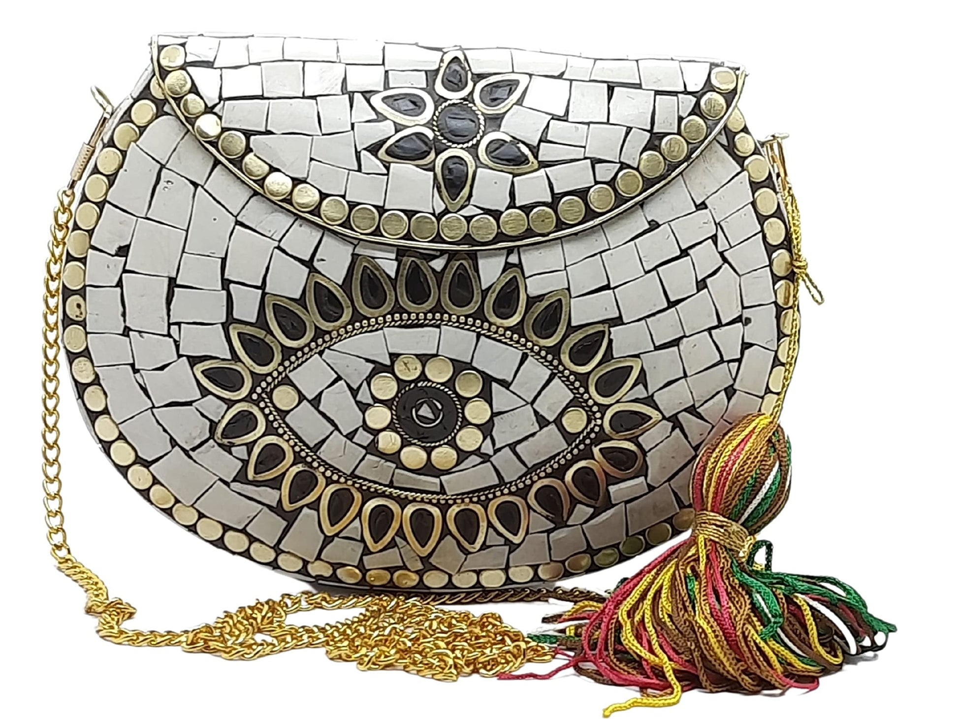 Trend Overseas Ethnic Antique Indian Handmade Mosaic Stone Chip Bag Bridal Clutch