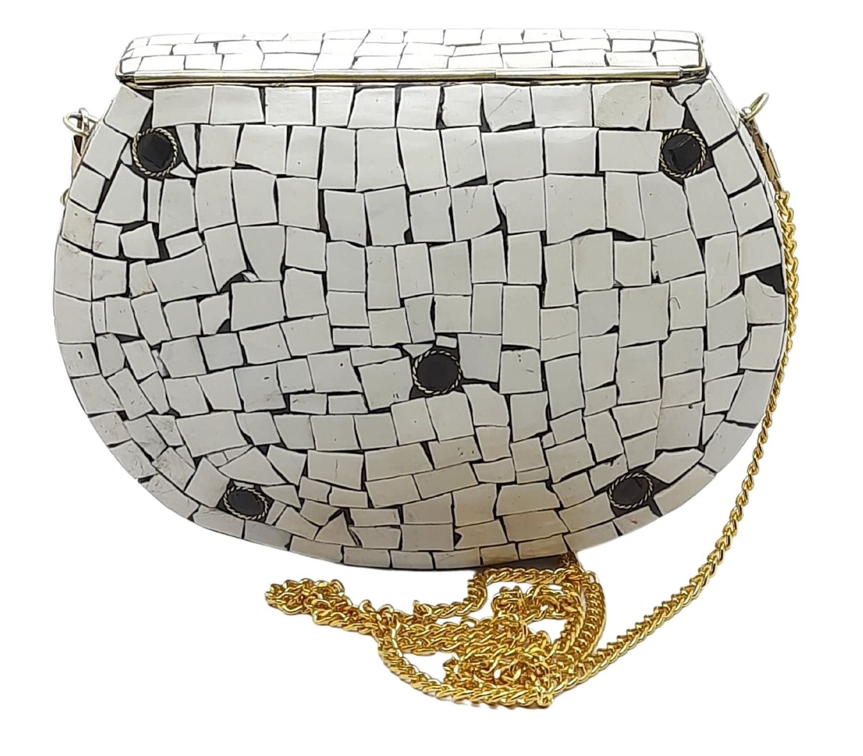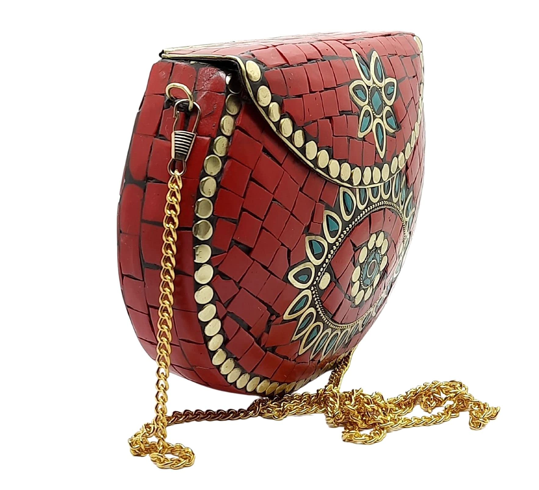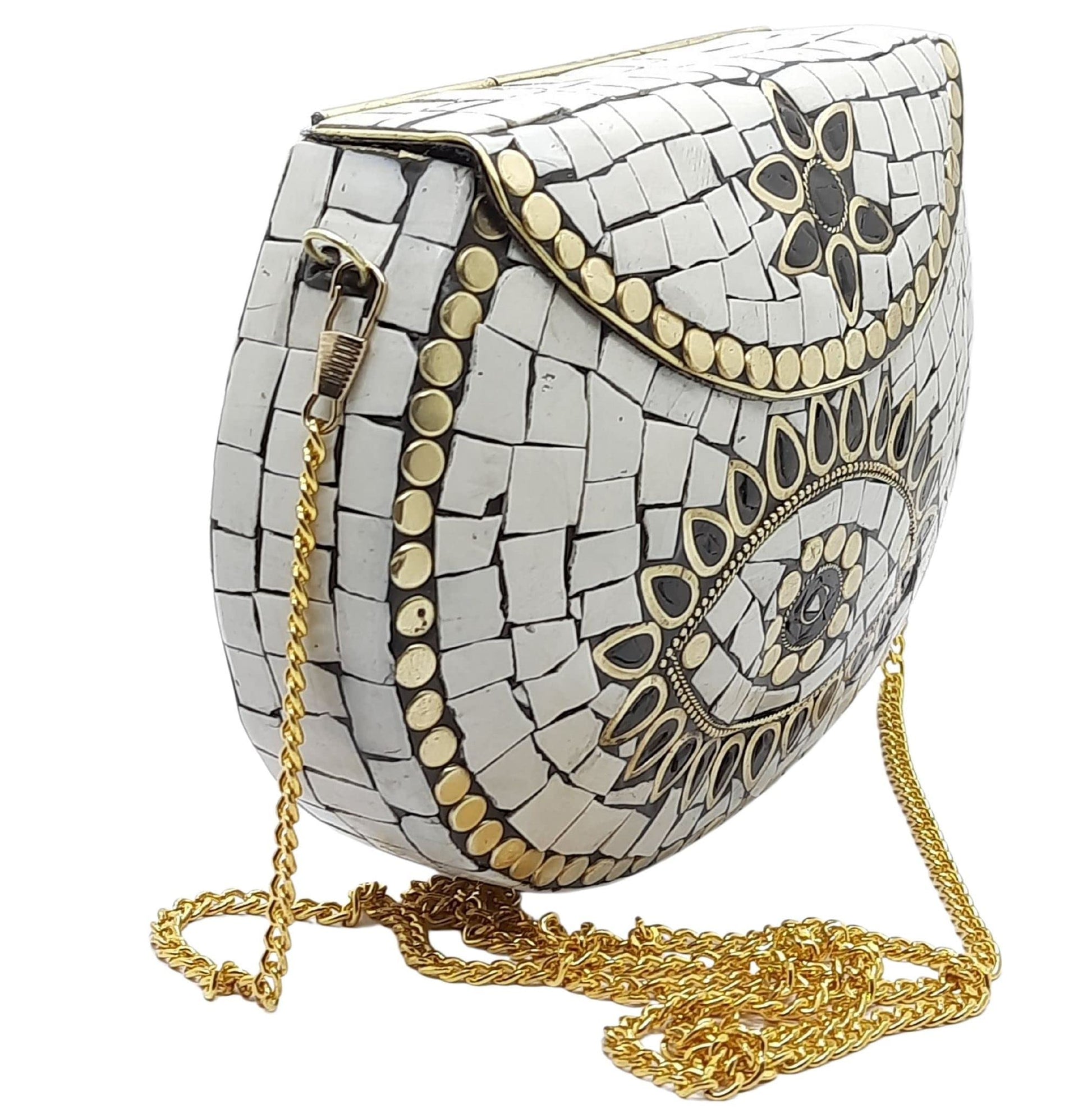 Trend Overseas Ethnic Antique Indian Handmade Mosaic Stone Chip Bag Bridal Clutch