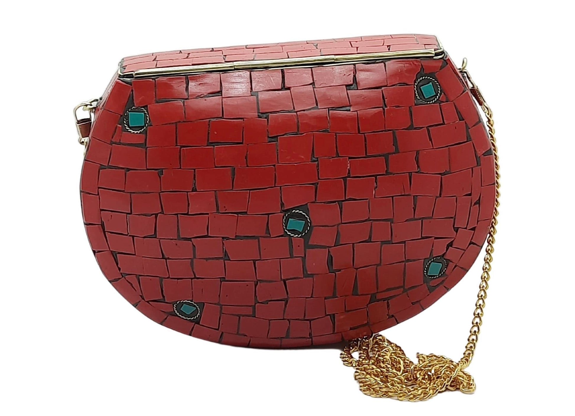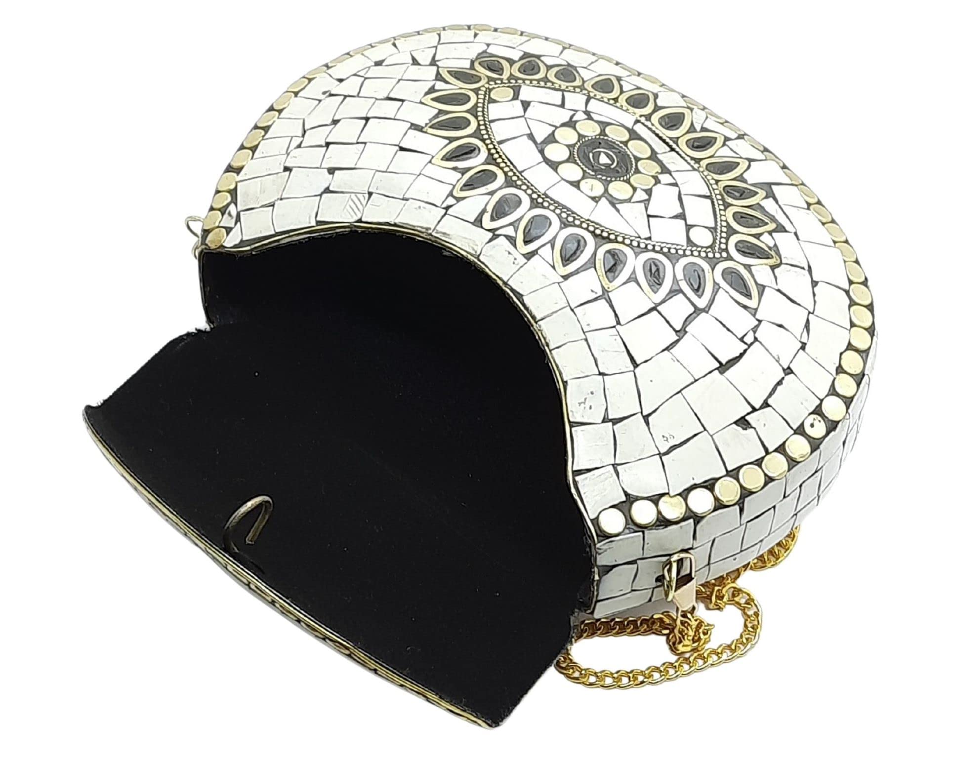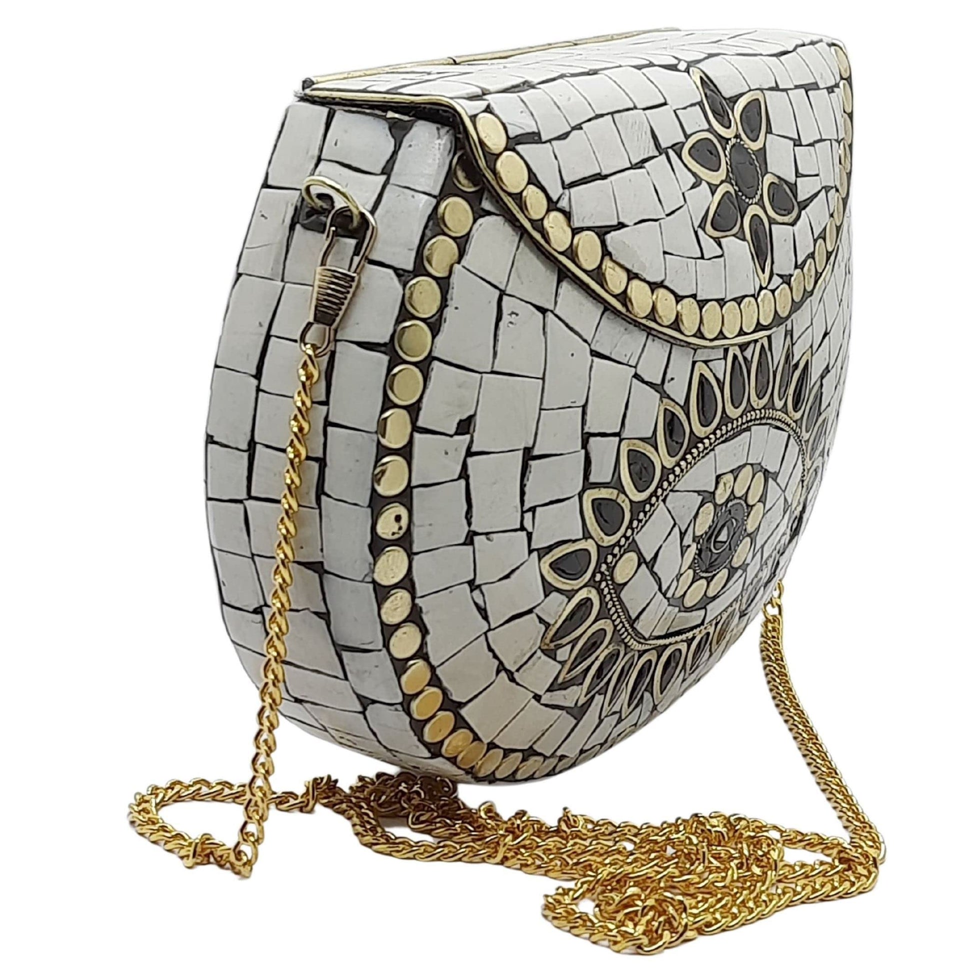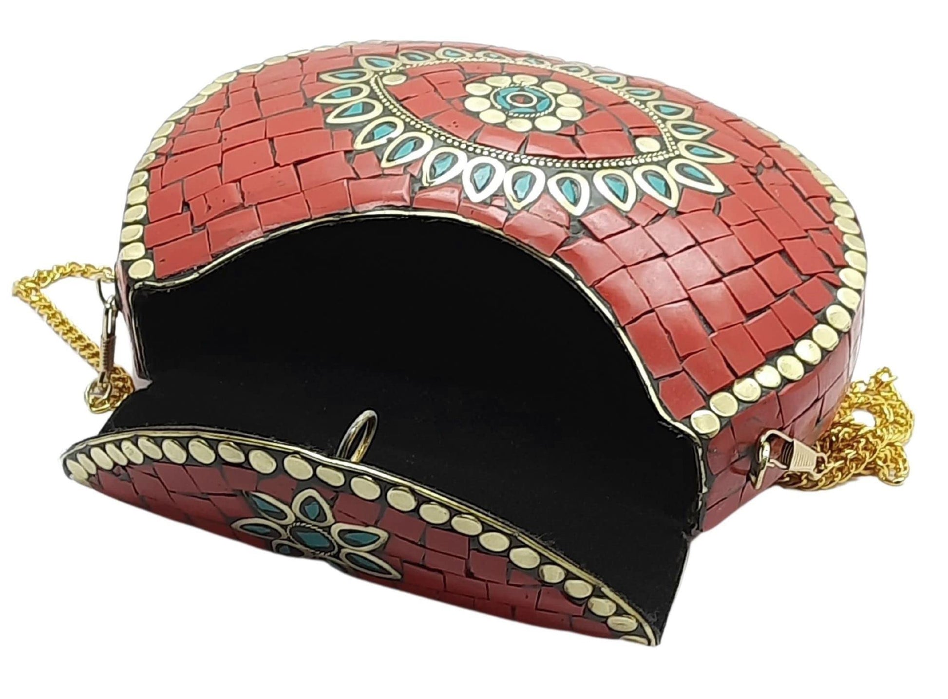 Trend Overseas Ethnic Antique Indian Handmade Mosaic Stone Chip Bag Bridal Clutch